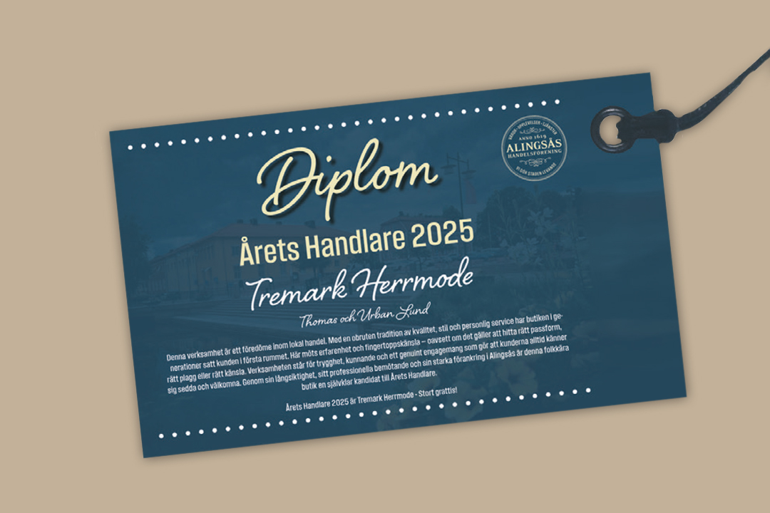Tremark Herrmode grundades redan 1970 av Bernt Lund, Göte Olsson och Arthur Johansson. Bernt drev sedan verksamheten vidare på egen hand från 1979 fram till 1998, då sönerna Thomas och Urban tog över butiken. I september 2020 firar vi 50-årsjubileum – och detta tänkte vi uppmärksamma rejält under hela året.